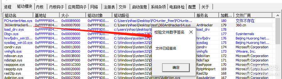 对就这么简单,就加载了一个隐藏驱动(无DriverObject 、无DriverSection)