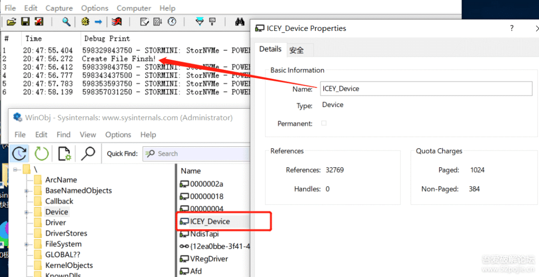 WinObj 双击 设备名字测试:(成功输出 “Create File Finsh!”)