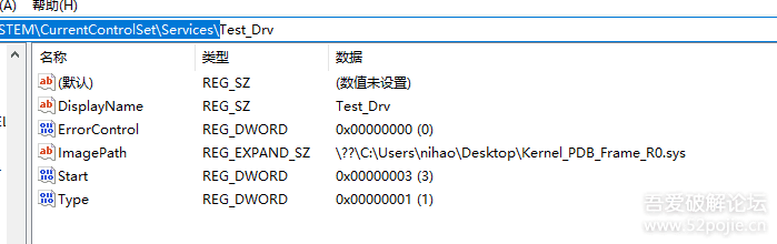 \HKEY_LOCAL_MACHINE\SYSTEM\CurrentControlSet\Services\Test_Drv