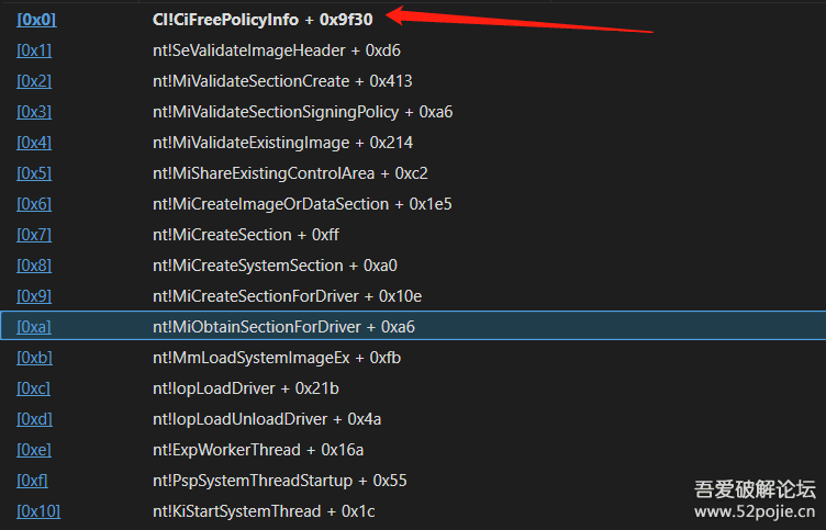 在通过MiObtainSectionForDriver获取DriverSection的时候,Windows就会进行数字签名认证啦!调用栈如下: