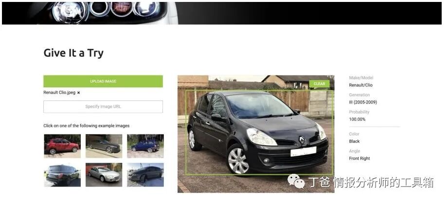 CarNET使调查人员能够上传图像并利用图像识别技术识别1995年以来生产的大多数汽车的品牌,型号和一代,准确率为97%以上。CarNET API起价为每月10欧元,但是,可以免费手动上传和扫描图像。调查人员利用被调查对象在社交媒体上发布的车辆图像,可以迅速确定被调查对象车辆的品牌和型号。识别这些信息可以帮助在道路和停车场快速识别车辆,在这些地方,清晰的车辆描述是至关重要的。在搜索其他车辆记录以确保结果正确时,此信息也很有用。调查人员可以使用“上传图像”按钮从他们的设备上传图像,也可以使用“指定图像URL”按钮从URL搜索图像。上传的图像将出现在按钮的右侧,详细说明Make、Model、Generation和概率得分。结果还将包括车辆的颜色和车辆在图像中的角度。![]()