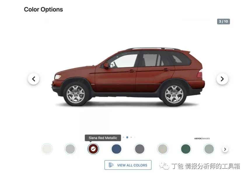 使用车辆历史,调查人员还可以查看车辆的一系列颜色,这对于确定可疑的品牌和型号是否与目标车辆的图像相匹配非常有用。车辆历史显示了车辆的所有标准官方颜色选项,这可以通过排除未生产的颜色选项来帮助确定确切的车辆型号,因为大多数车主不会将车辆重新喷涂其他颜色。![]()