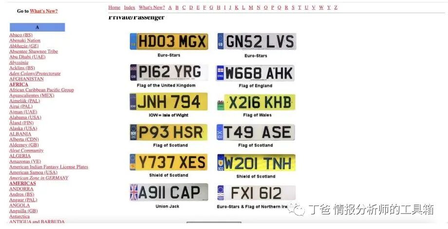 全球安全团队负责保护企业的资产和人员。当安全团队识别出潜在的威胁参与者时,他们将设法定位他们。在社交媒体上发布威胁性帖子的情况下,确定责任人及其驾驶的车辆可以使现场安全人员对目标进行视觉描述。车辆识别意味着安全团队可以在公司大楼外阻止威胁行为者,在那里他们对业务构成的风险较小。车辆记录可以链接到道路上所有车辆的两个不同的唯一号码。利用不同的互联网系统,这些独特的数字可以搜索回来的细节包括,车辆制造商,车辆型号,车辆首次登记的年份,车辆颜色,车辆税收状况,等等。这些唯一的数字是VIN和VRM,如下所示。VRM (Vehicle Registration Mark),即车辆登记号,是世界上每辆车都会显示的车牌。VRM通常是一个字母数字(尽管有时只是数字)的ID,它在颁发地区的车辆登记中唯一标识车辆或车辆所有者。在一些国家,比如英国,VRM是该国所有车辆所独有的。在其他国家,如美国,一个VRM是唯一的所有车辆在国家内,但在全国范围内,可能有多个车辆具有相同的VRM。本指南将向您展示如何使用美国和英国的车辆记录进行OSINT调查。识别车辆国家:http://worldlicenseplates.com/世界车牌展示了来自世界各国的当前和历史车辆车牌设计。利用世界车牌,调查人员可以将目标车辆的vrm与他们认为目标去过的国家的格式进行匹配,以确定最有可能拍摄图像的地方。确定目标车辆的国家可以帮助确定任何失踪或逃犯的目标的可能位置。![]()