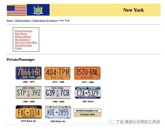 世界车牌网站也显示历史车牌设计。下图显示的是纽约的车牌。![]()