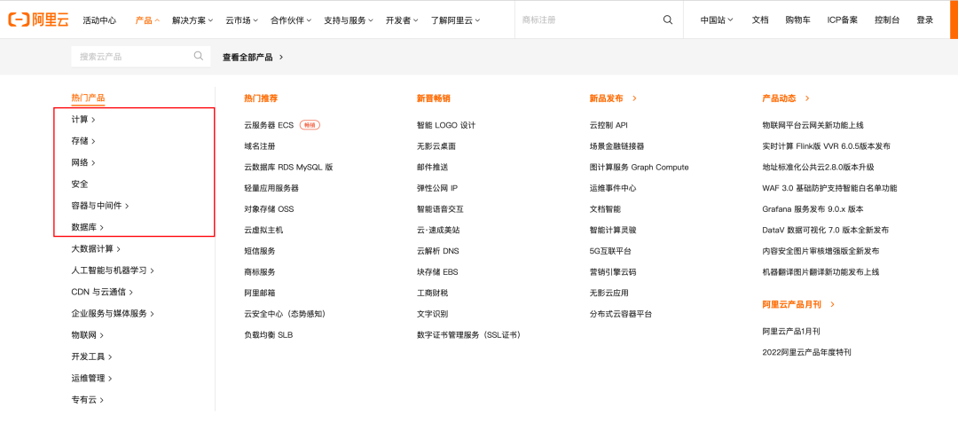 以上图阿里云的产品服务为例: