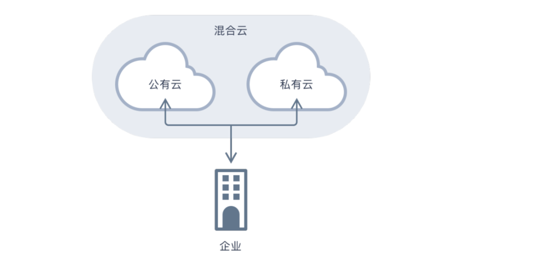 同时使用公有云和私有云,从而允许公司将敏感数据保留私有云中(安全性),同时使用公有云来运行应用程序(低成本),就类似于我们现实打点中遇到的企业官网等业务放在云上,核心业务部署在内网。