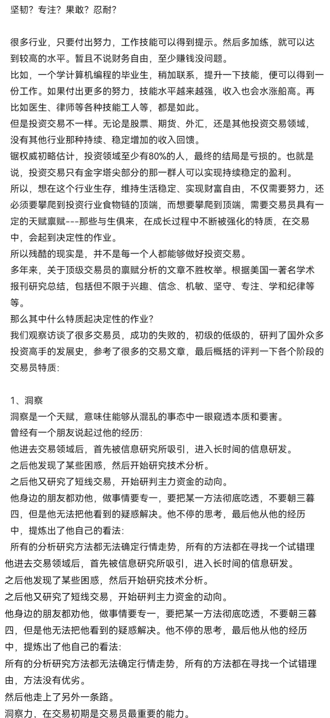所以,成为一个顶级交易员最重要的天赋是什么?