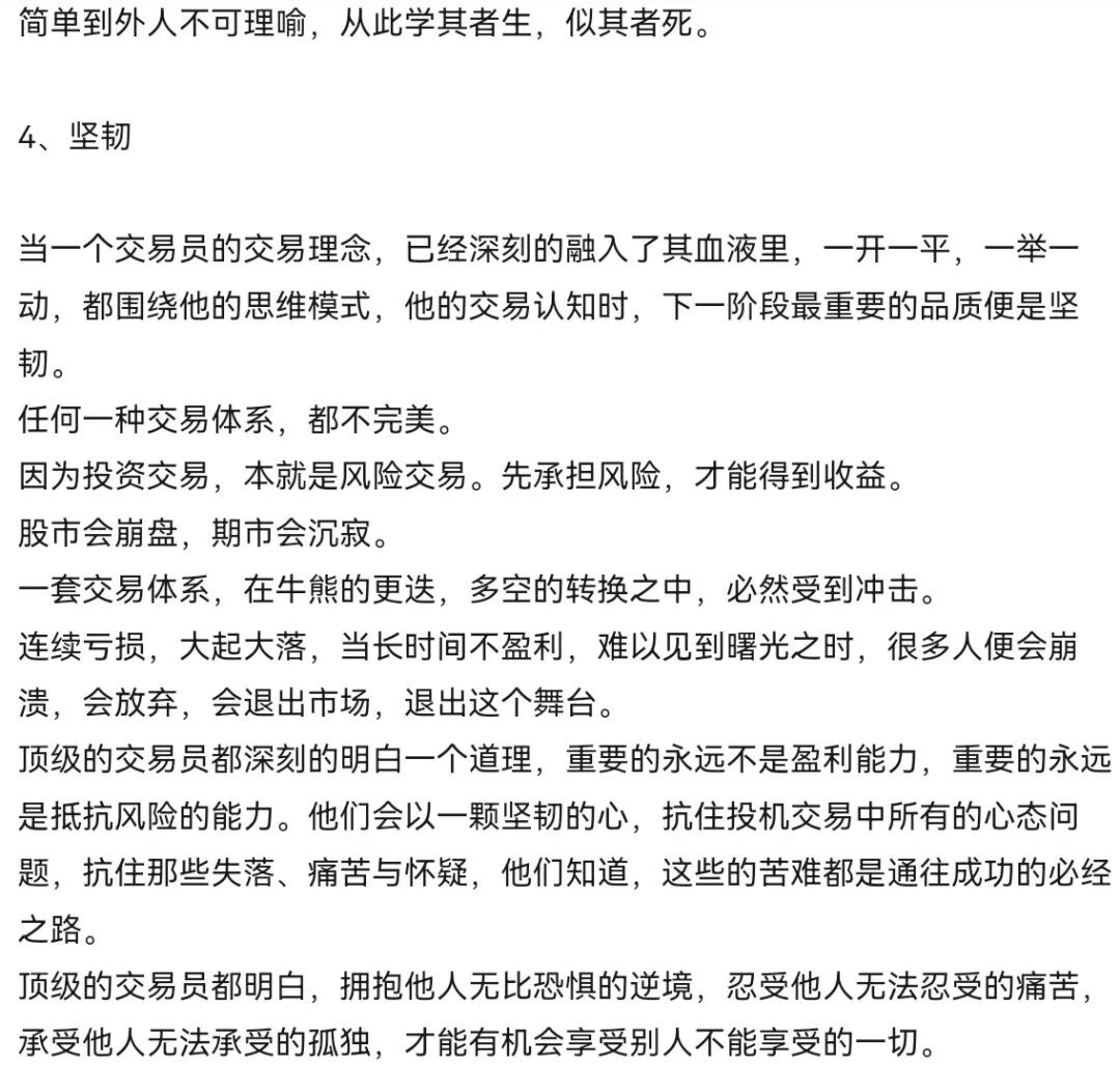 交易也是如此,当交易员解决了眼前的困境,它便成为了某认知的一部分,它便不再重要。直到遇到下一个困境,这时对他来说,交易中最重要的事情便会发生改变。
