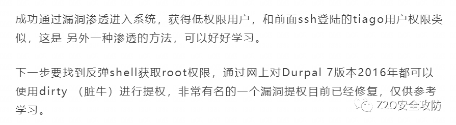 现在利用收集到的信息进行提权 刚刚在文件收集到这个网站是2016年的Durpal7