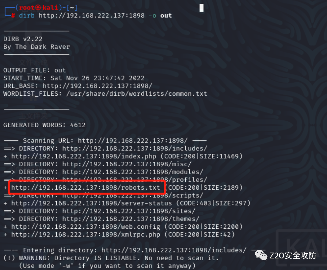 使用命令:dirb http://192.168.222.137:1898 -o out找到一个robots.txt的文件,后台打开看看: