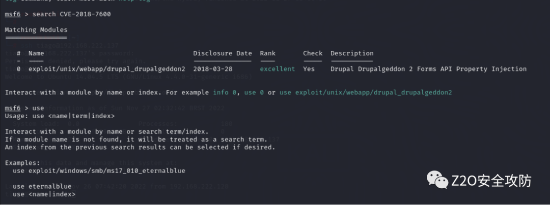 先输入指令:msfconsole再search CVE-2018-7600