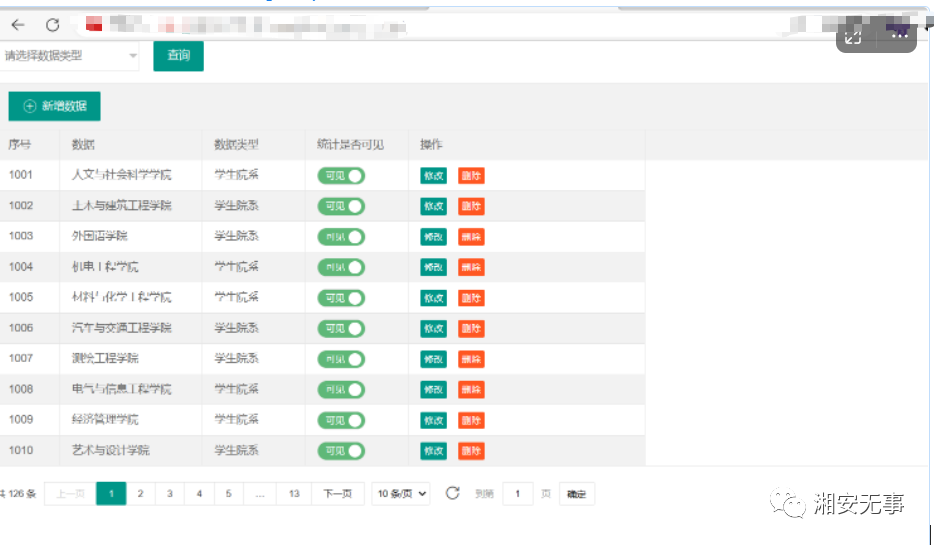 登录没有权限 访问 index/collegeDepartment可获得管理员权限进行添加等信息