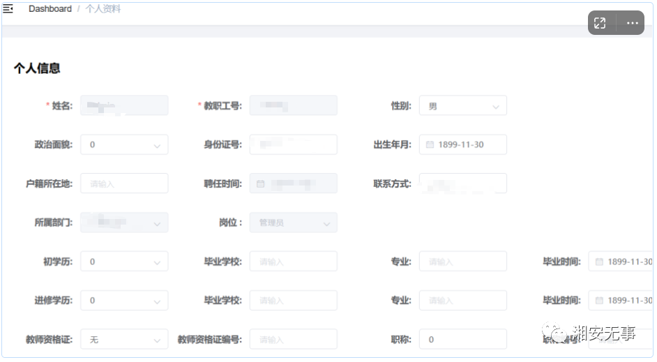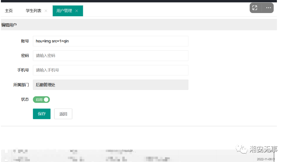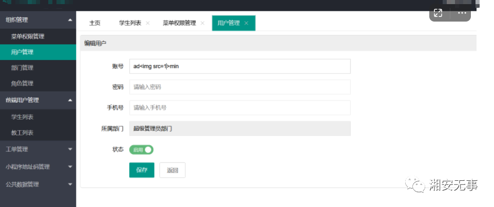 该用户为最高权限再前端用户管里处泄露1.6w个个人信息,手机号/身份证等2.xss存储在用户管理处编辑admin账户信息