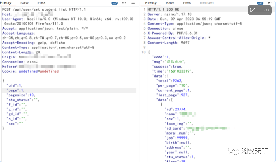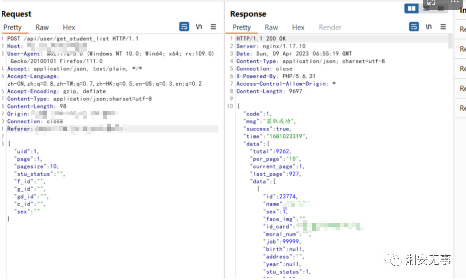 抓包获取/api/user/get_student_list该接口可未授权访问重放后