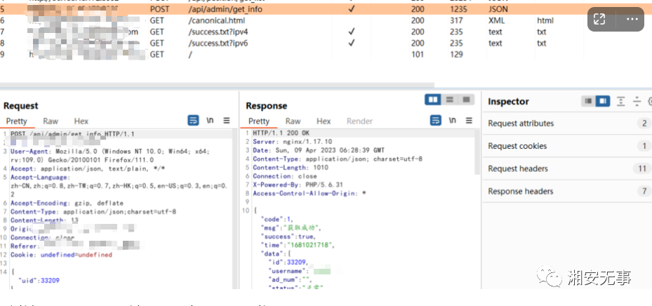 访问/api/admin/get_info该接口(也是在点击修改资料处抓包获得)