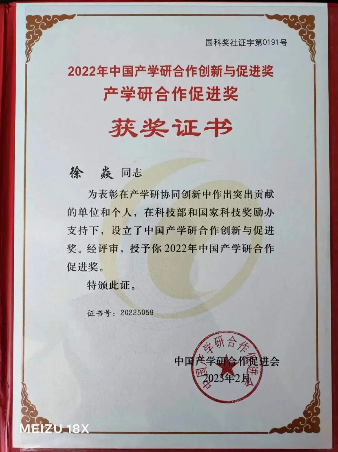中国产学研合作创新与促进奖是经科技部和国家科技奖励工作办公室批准设立,面向我国产学研界协同创新的最高荣誉奖,旨在表彰产学研合作创新工作中作出突出贡献的先进单位及个人。