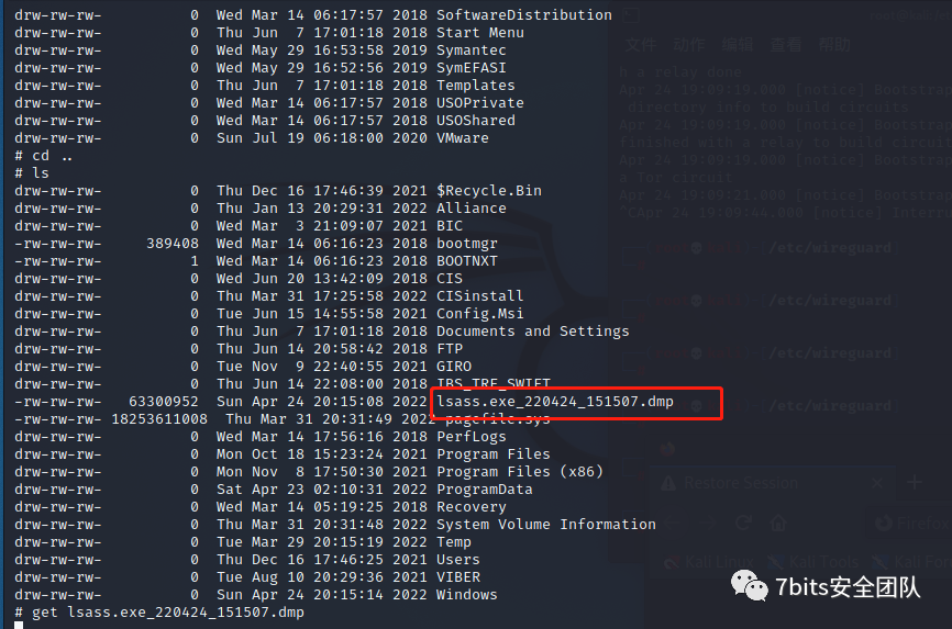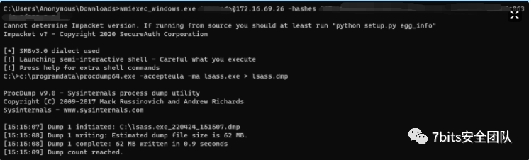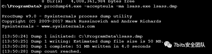 c:\progarmdata\procdump64.exe -accepteula -ma xxx > lsass.dmp这里保存到c盘根目录下去了