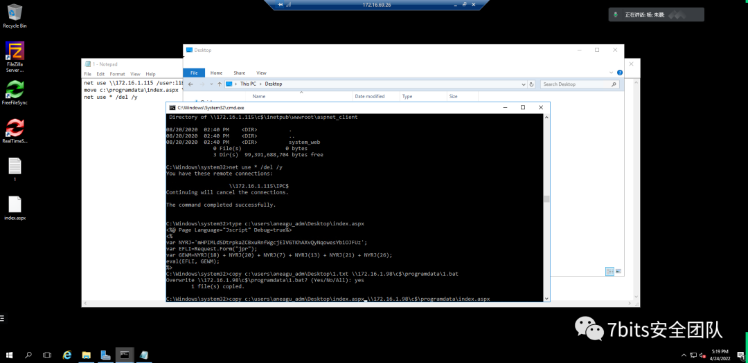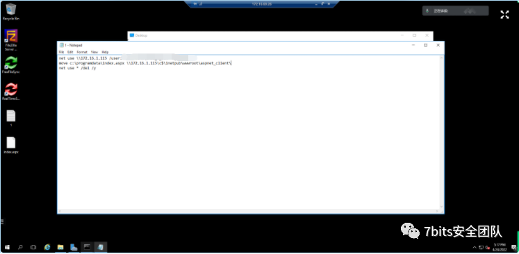 这样就好办了,写一个bat脚本,放到dc上,之后通过运行这个bat脚本来往exchange服务器上丢backdoor。这样net use 和move就处于同一个上下文,就可以向远程机器传递凭据了