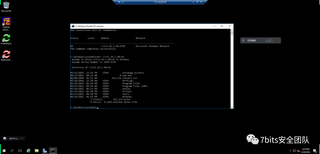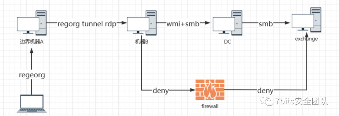 rdp连接机器B,之后通过命令行net use连上DC,再通过DC创建IPC$来往exchange服务器上放文件。