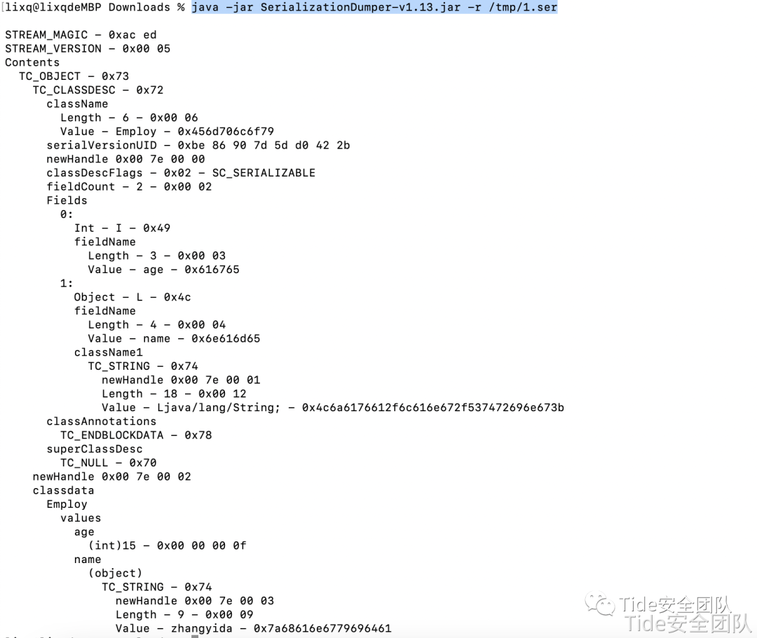 import java.io.ObjectInputStream;import java.io.Serializable;import java.io.IOException;public class Employ implements Serializable {public String name;//public int age;private void test(String name){System.out.println(name);}private void readObject(ObjectInputStream objin) {try {objin.readObject();Runtime.getRuntime().exec("open /System/Applications/Calculator.app");} catch (IOException e) {e.printStackTrace();} catch (ClassNotFoundException e) {e.printStackTrace();}}}