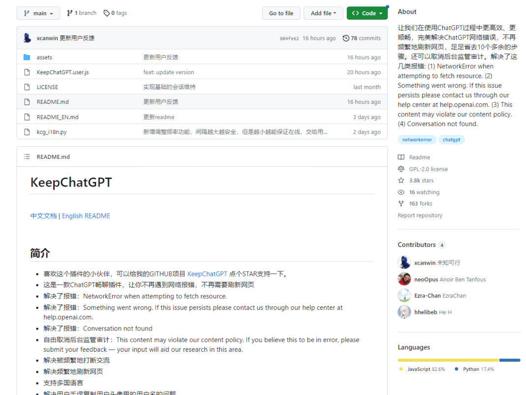 那么推荐一个名为「KeepChatGPT」油猴脚本,而且得到不错的星标和好评,分享给大家使用。