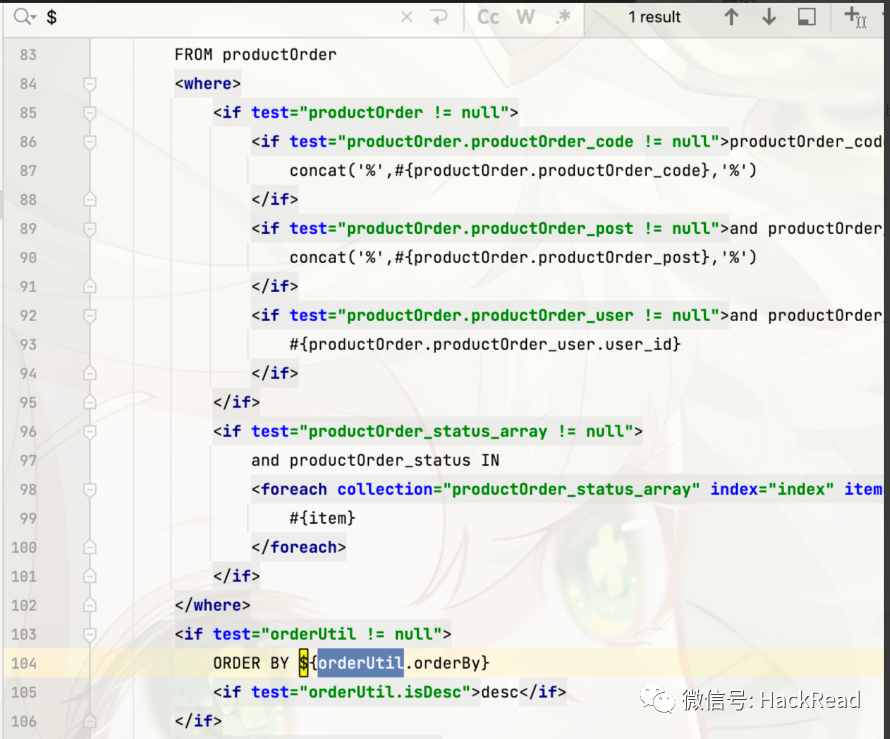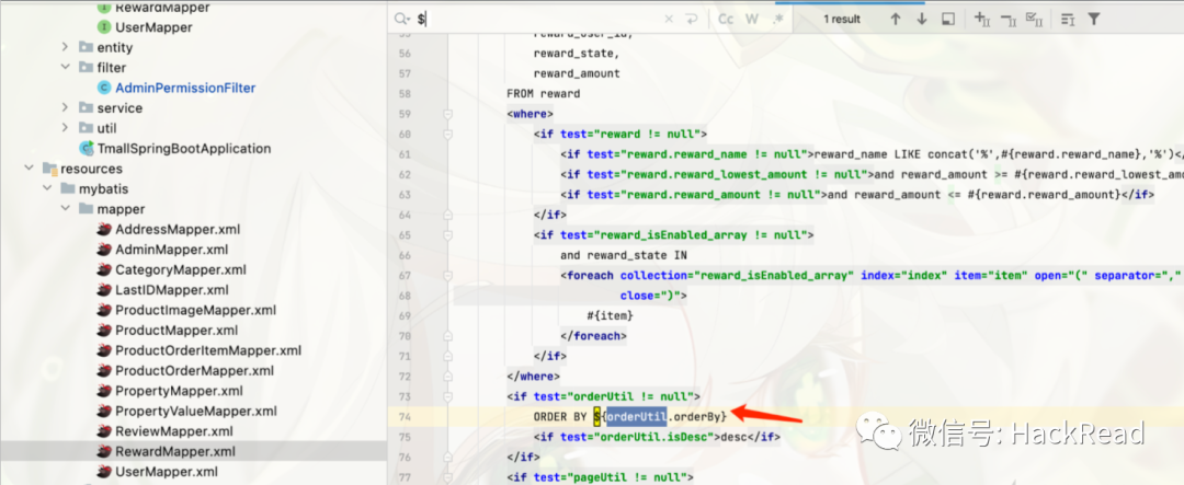 数据库框架为Mybatis所以我们只需要关注$即可,全局搜索$,之后定位到同名的dao文件