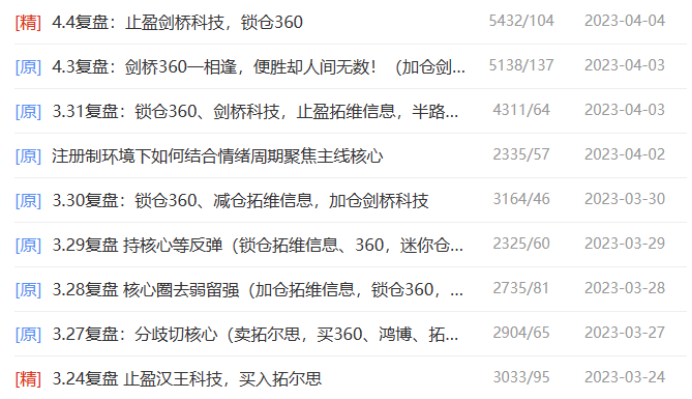 但是那几天全市场的核心在360、鸿博股份、拓维信息,拓尔思、昆仑万维等核心股身上,作为我这种龙头选手来说,剑桥依然没有辨识度,3月24早上不强势,我就直接上车主升浪的拓尔思了,因为那阶段20cm赚钱效应爆炸。几乎都扑在20cm或者板块核心上,剑桥科技也提示朋友们买了,但是自己却3.29日才扫板第一次买入。当时买入的逻辑是穿越过了AI板块高位震荡阶段,自己涨幅翻倍,带领CPO板块很多补涨像新易盛、中际旭创等,CPO的业绩都还不错,国家大厂算力需求旺盛,也是AI最先能够业绩落地的板块,加上龙虎榜外资和机构都大买,量价完美,就趁后面分歧的时候连续加仓,4月3日超预期走强,继续加仓,于4月4日尾盘炸板全部止盈,当时AI板块新高后尾盘回落,剑桥炸板,就被洗出来了,后悔不已。随时观察板块和个股密切关联走势,结合情绪周期买在分歧,卖在一致。经过当晚的复盘,继续看好CPO板块,第二天纠错,买回20cm补涨新易盛。