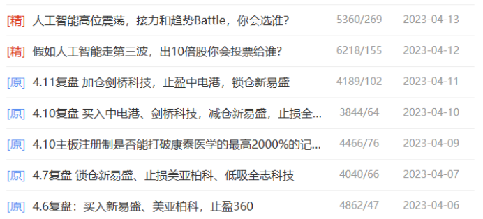 然而这波做完CPO,在4月13日清仓了剑桥科技后,切到了数据要素龙头中国科传身上,奥飞娱乐跌停止损之后,发现连板啥也不是,还是得继续拥抱趋势票。于是做了AI的昆仑万维和数据要素龙头中国科传,科传一路看好,4板当天低吸的,扛了2天分歧后不及预期,尾盘卖出,只为第二天切到剑桥科技身上。