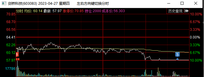 4月27日总龙头低开低走全天震荡,且板块个股都是低开低走全天震荡,跌停个股不断变多,中科曙光、360等都是跌停,20cm跌停也有好几个,核心辨识度个股纷纷大跌,资金加速撤离AI,尾盘也有抄底资金进场,看看接下来资金会怎么选择。今天就是计划低吸做T,然而没有拉升的T点,尾盘却回封了跌停,回封瞬间,底仓减仓处理了,计划是节前控制仓位,低吸做T总龙头剑桥科技。