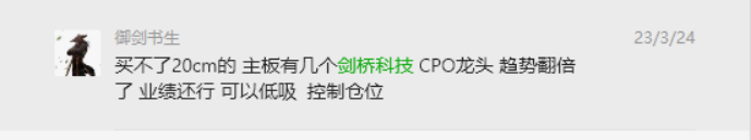 3月16日,360和昆仑万维大阳线新高先于AI板块见底启动,3月17日,360继续大阳线新高,带领板块大阳线启动反弹,3月17日,就是AI的第二波启动日。从第一波AI炒ChatGPT到算力等,沾边就行,到第二波更加聚焦底层逻辑的算力各分支及AIGC应用端,期间3月22日鸿博股份三个一字加上拓维信息,为算力站台,加上360和昆仑万维不断新高,合力助推AI板块加速。从3月17日起,剑桥科技连续4天大阳线,引起了我的注意,并于3月22号晚上披露年报,且发布消息,800G光模块供货微软测试。我是准备第二天23号去干的,结果第二天走成了业绩兑现大跌,走势不及预期就没去了,但是他依然在5日线,趋势健康。还有就是3月22号中际旭创和新易盛大涨,机构大买,引起了我的注意,在22号和23号那两天,重点研究了CPO的逻辑,但是逻辑再硬,还要看市场认不认。于是就在24号继续观察,第二天超预期高开上午冲高震荡下午涨停。