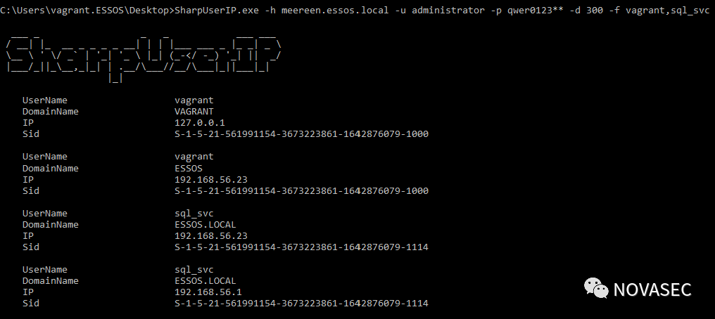 SharpUserIP在域控或远程提取登录日志,快速获取域用户对应的IP地址。项目地址:https://github.com/lele8/SharpUserIP
