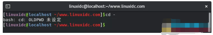 是因为 cd 命令设置了 OLDPWD 环境变量值。除非你至少执行了一次 cd 命令,否则 OLDPWD 环境变量不会包含任何值