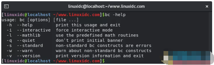 [[email protected] ~/www.linuxidc.com]$bc -help