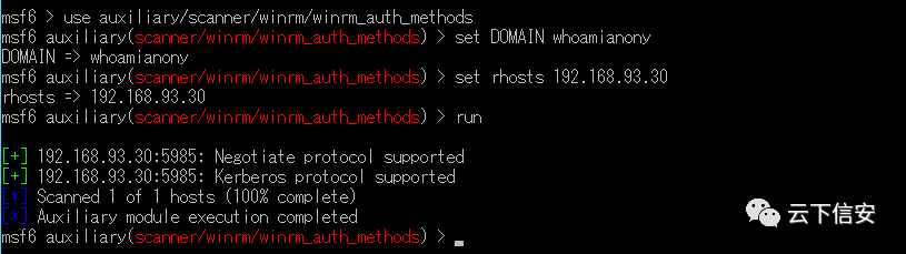 //探测use auxiliary/scanner/winrm/winrm_auth_methodsset DOMAIN whoamianonyset rhosts 192.168.93.30run