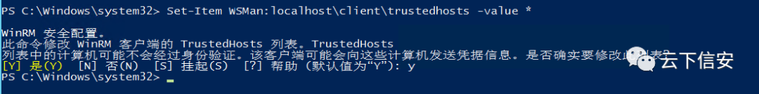 winrm set winrm/config/Client @{TrustedHosts="*"}//如果产生如下报错可使用powershell配置Set-Item WSMan:localhost\client\trustedhosts -value *