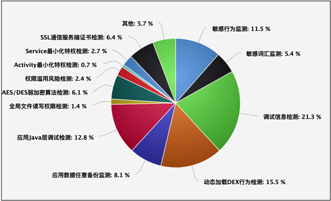 数据统计: 对辖区范围内APP风险检测数据进行汇总展示,对各漏洞数量占比进行图表展示,见图11。