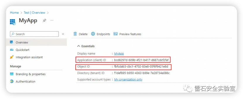 在这里,在我们的“MYAPP”应用程序中,应用程序(客户端)ID 指的是应用程序“MyApp”ID,而应用程序的对象 ID 是服务主体 ID。