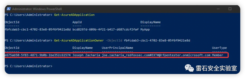 已为服务主体 MYAPP 分配了特权角色管理员角色。我们还可以确认用户 APPADMIN 不是应用程序的所有者