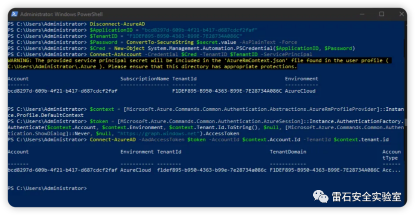 1) 使用受感染用户帐户的凭据,让我们从 PowerShell 连接到 Azure。请注意,我们需要在 PowerShell 中安装Az和AzureAD模块。