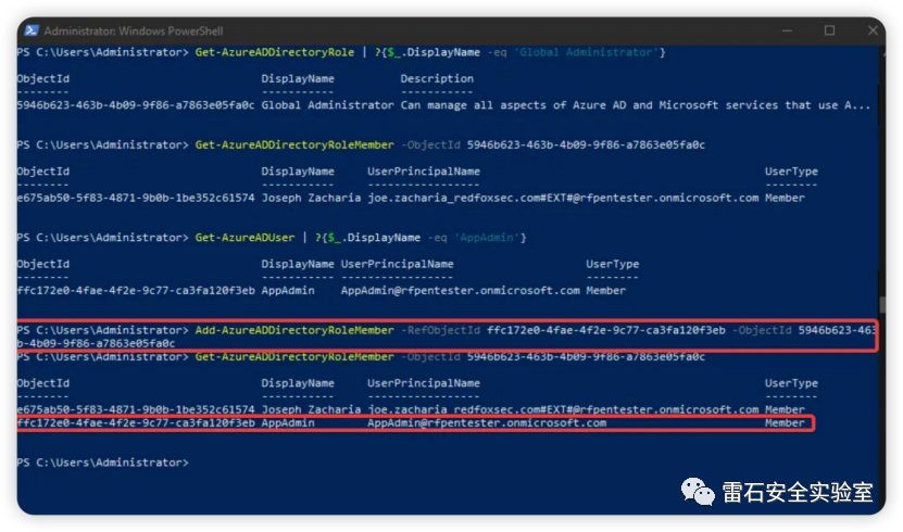 7) 作为服务主体连接后,我们可以利用其特权角色管理员角色授予用户 APPADMIN 全局管理员角色