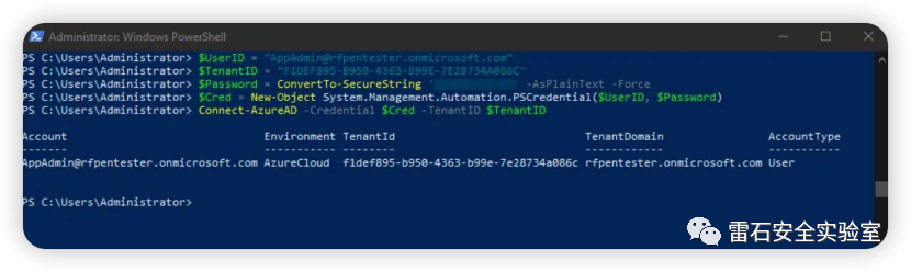 Connect-AzureAD -Credential $Cred -TenantID $TenantID