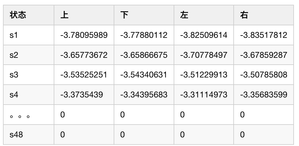 那么我们可以用它来初始化我们的表格,纵坐标表示格子序号,横坐标表示动作: