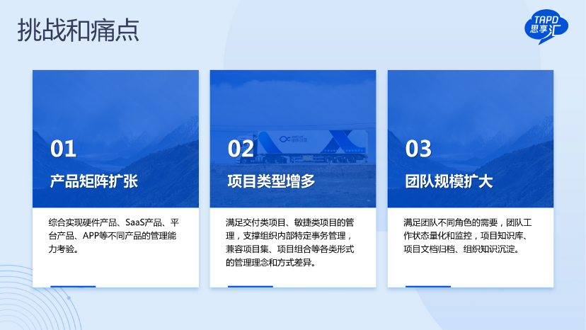 鱼快创领是一家面向商用车领域的车联网公司,提供以车为中心的数字化服务,为交通运输物流行业带来更加绿色、安全、高效的智能网联解决方案,用科技推动行业进步。本文整理自鱼快创领项目管理专家唐骥在TAPD思享汇上的分享,为大家介绍鱼快创领如何专注于产品价值,通过TAPD探索出多场景软硬件一体化敏捷项目管理新思路。