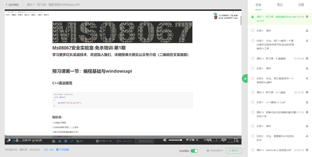 如果无法准时参加直播课程,在线培训的每节课程都会被录制成视频上传到官方网站(www.ms08067.com),或者APP(阔知学堂搜ms08067)可随时随地在线观看。