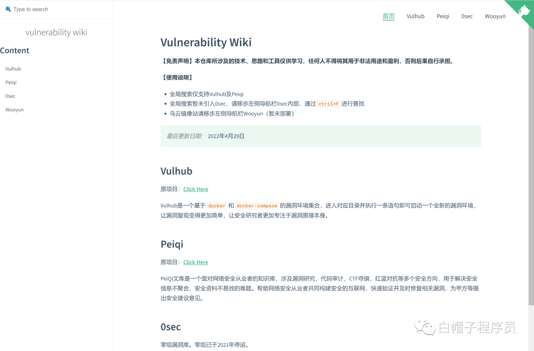 docs-base:主项目入口,包括主要漏洞数据文件及wooyun、0sec导航页面。