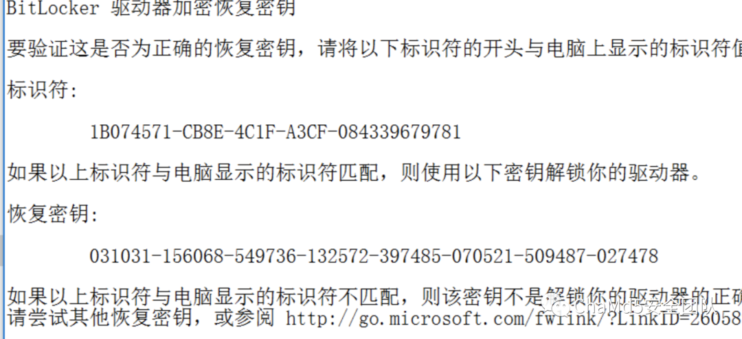 c盘有bitlocker加密,在非系统盘中找到恢复密钥