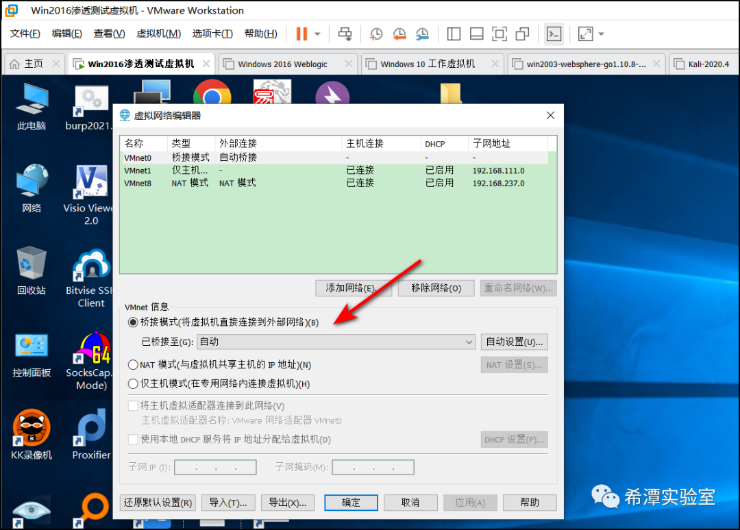 在VMware虚拟机中使用扫描器,最好是用桥接模式,不用NAT模式。看到这里,很多网友可能会不屑一顾,“设置桥接模式这方法谁不知道?”,但是这里面VMware还是有一个大坑的,当时花了好长时间才解决这个问题。在2016年做一个项目中,部分同事的VMware虚拟机只要一开扫描器,5分钟左右,虚拟机一定断网。后来花了2天时间,挨个改VMware软件的各种设置,反复测试,最终发现了问题出在“桥接模式”的“自动”模式上,下边ABC_123给出一个可靠不会出问题的操作步骤。